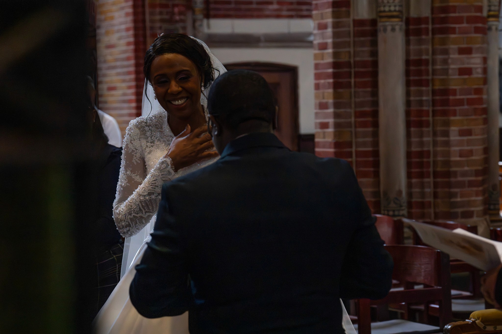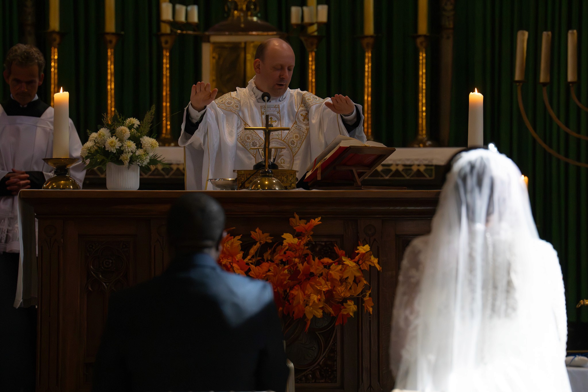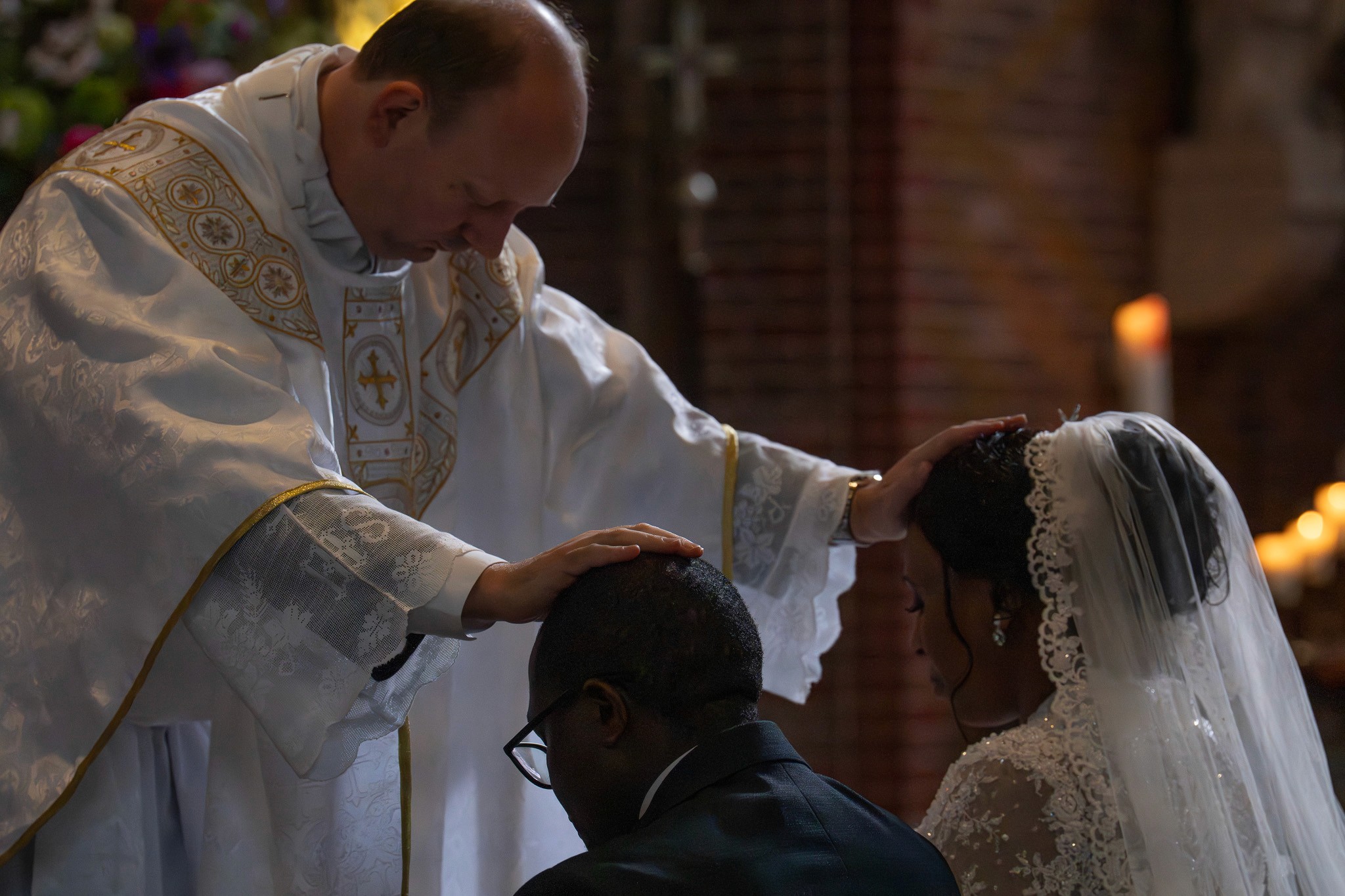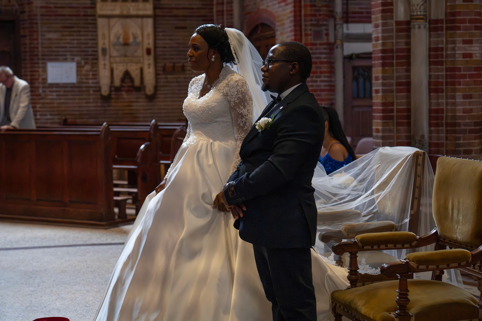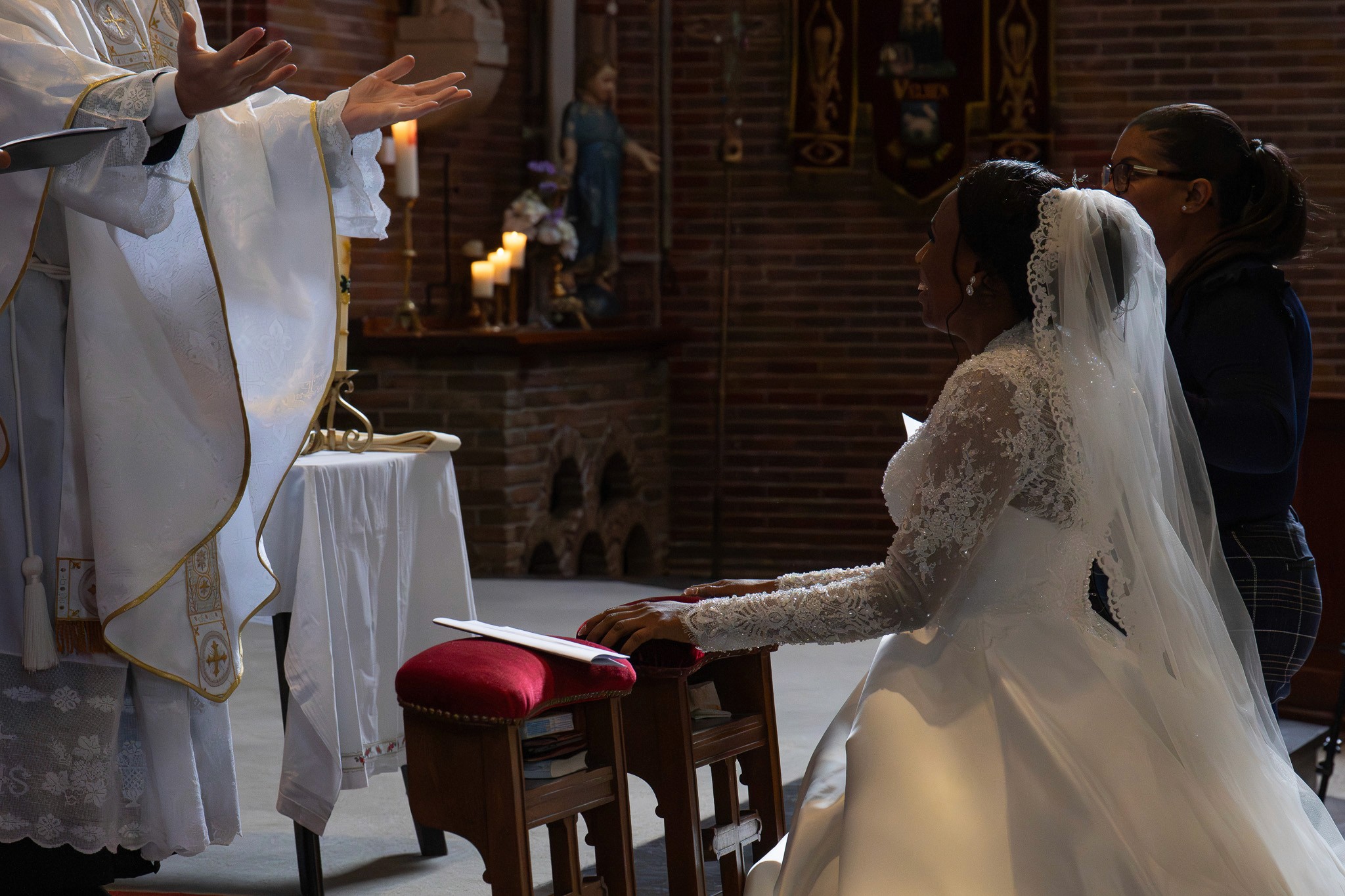 De ceremonie vond plaats in een prachtige Katholieke Kerk, waar het geloof een centrale rol speelde in hun liefde en toewijding.