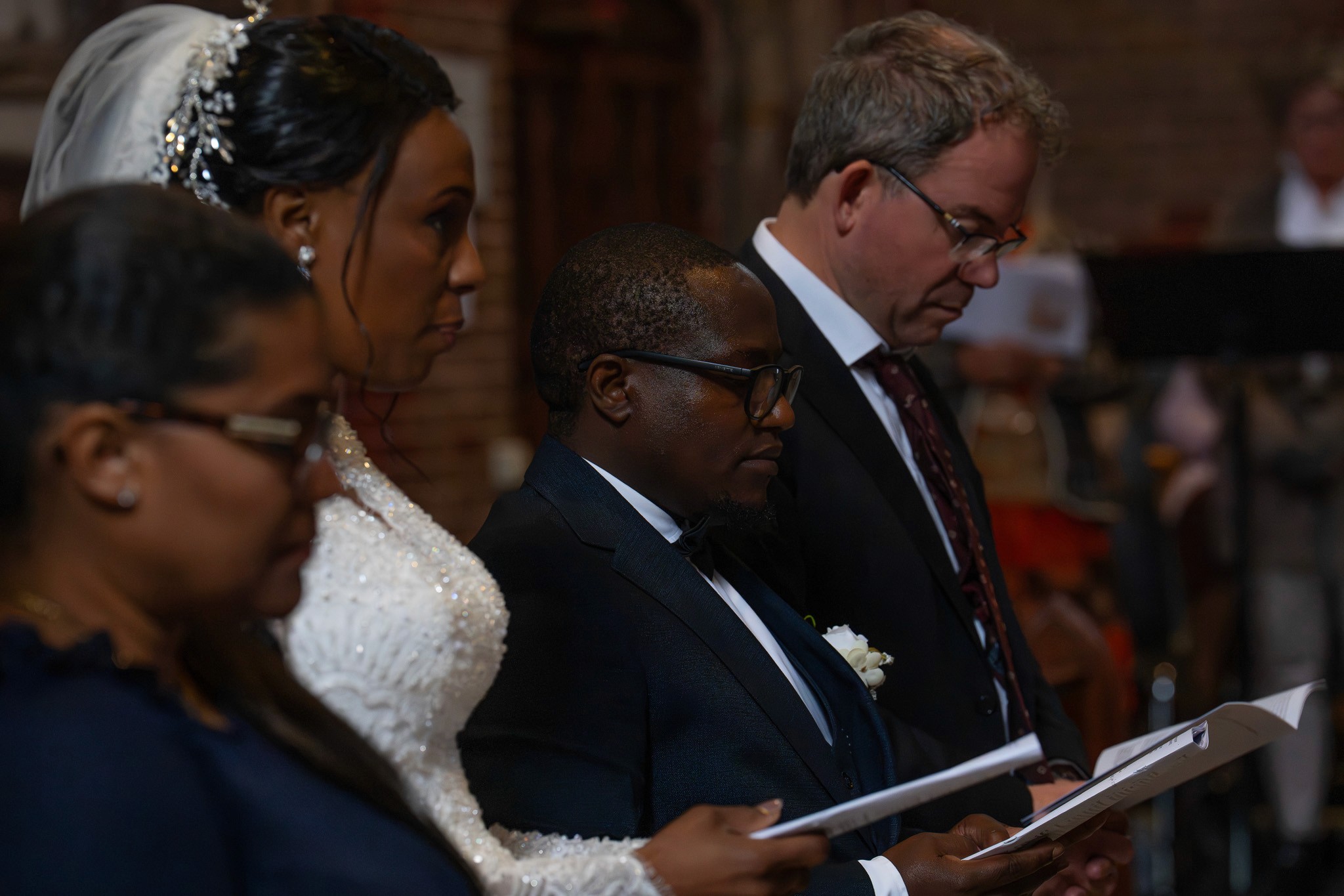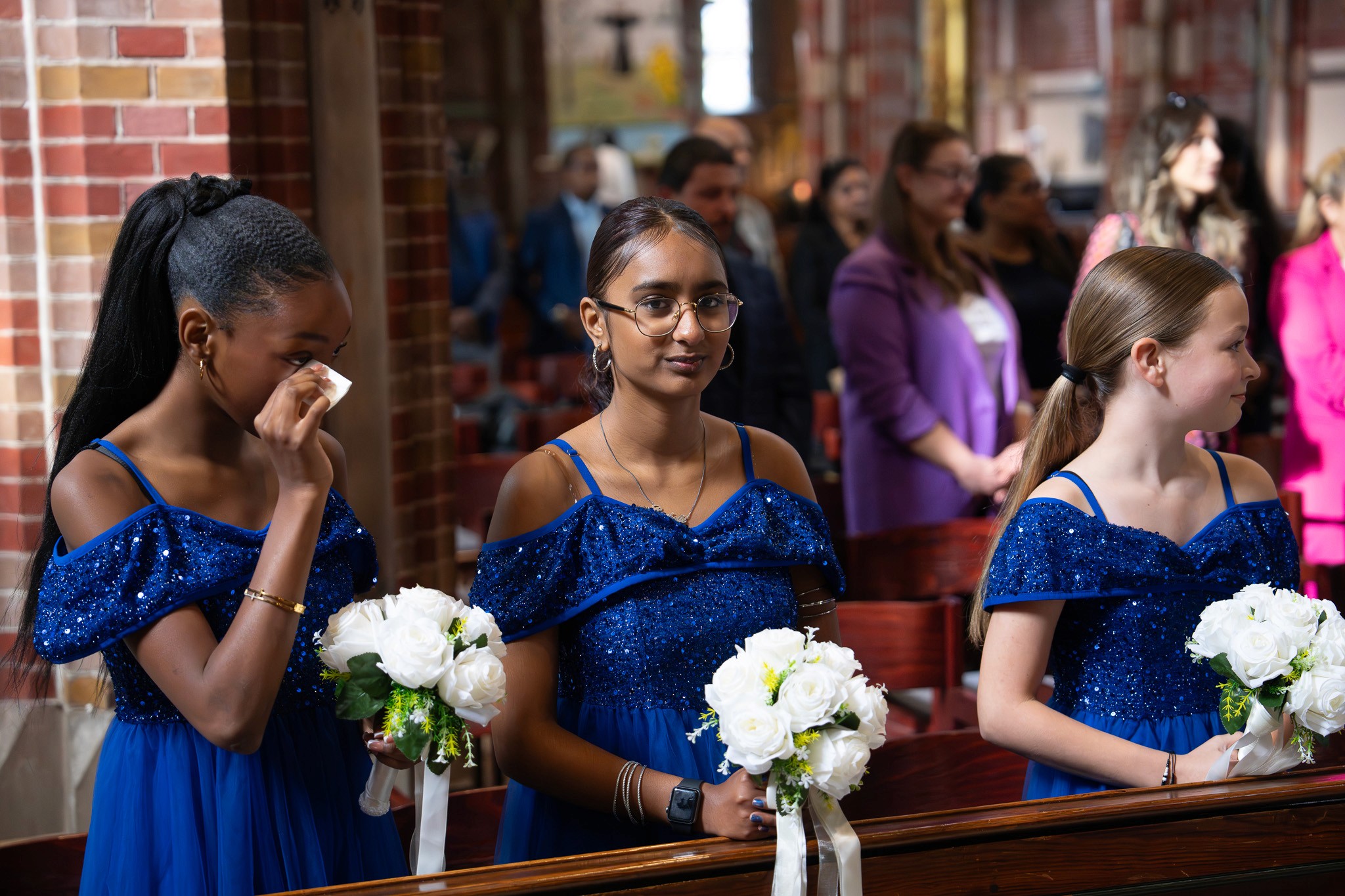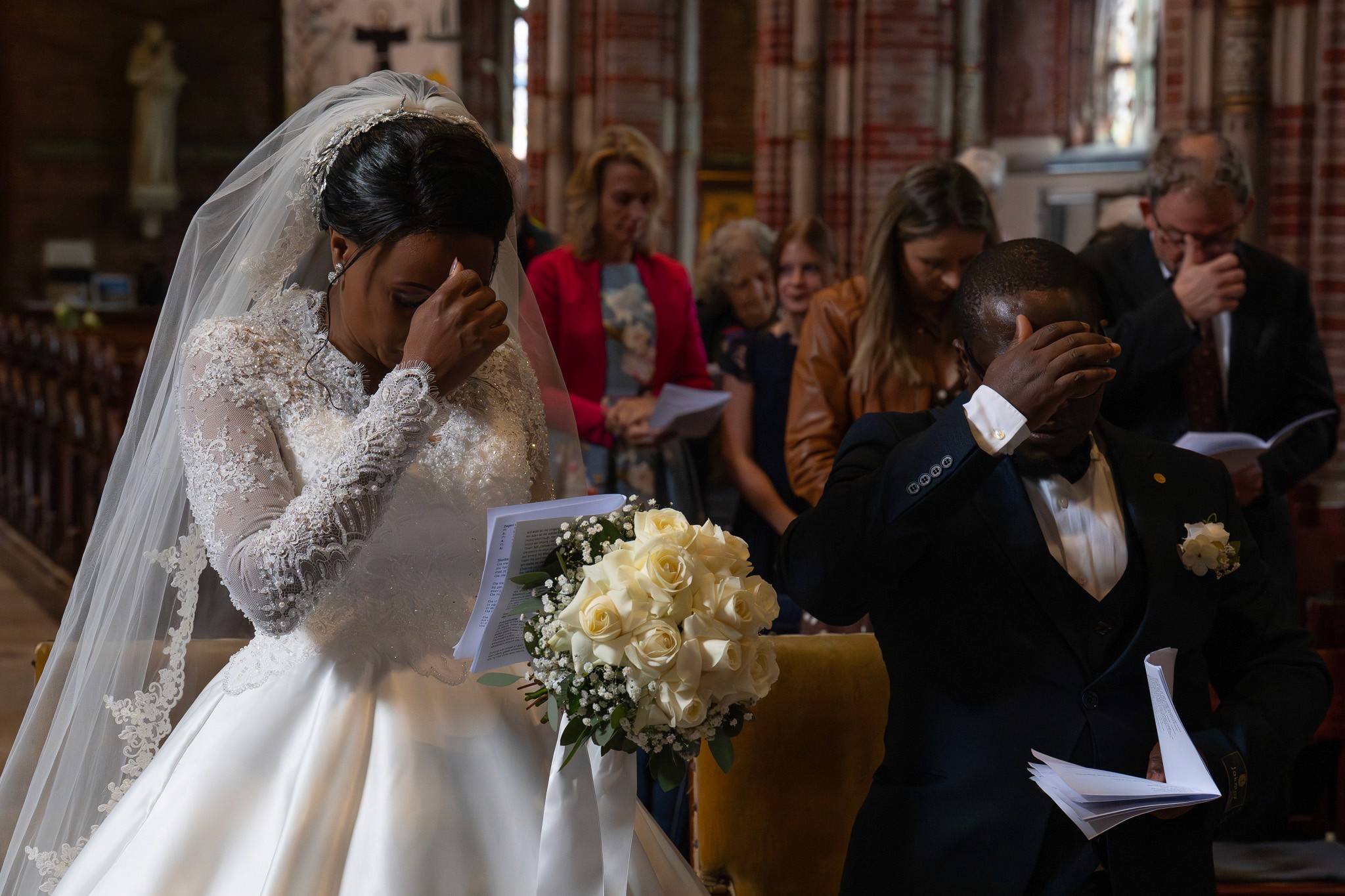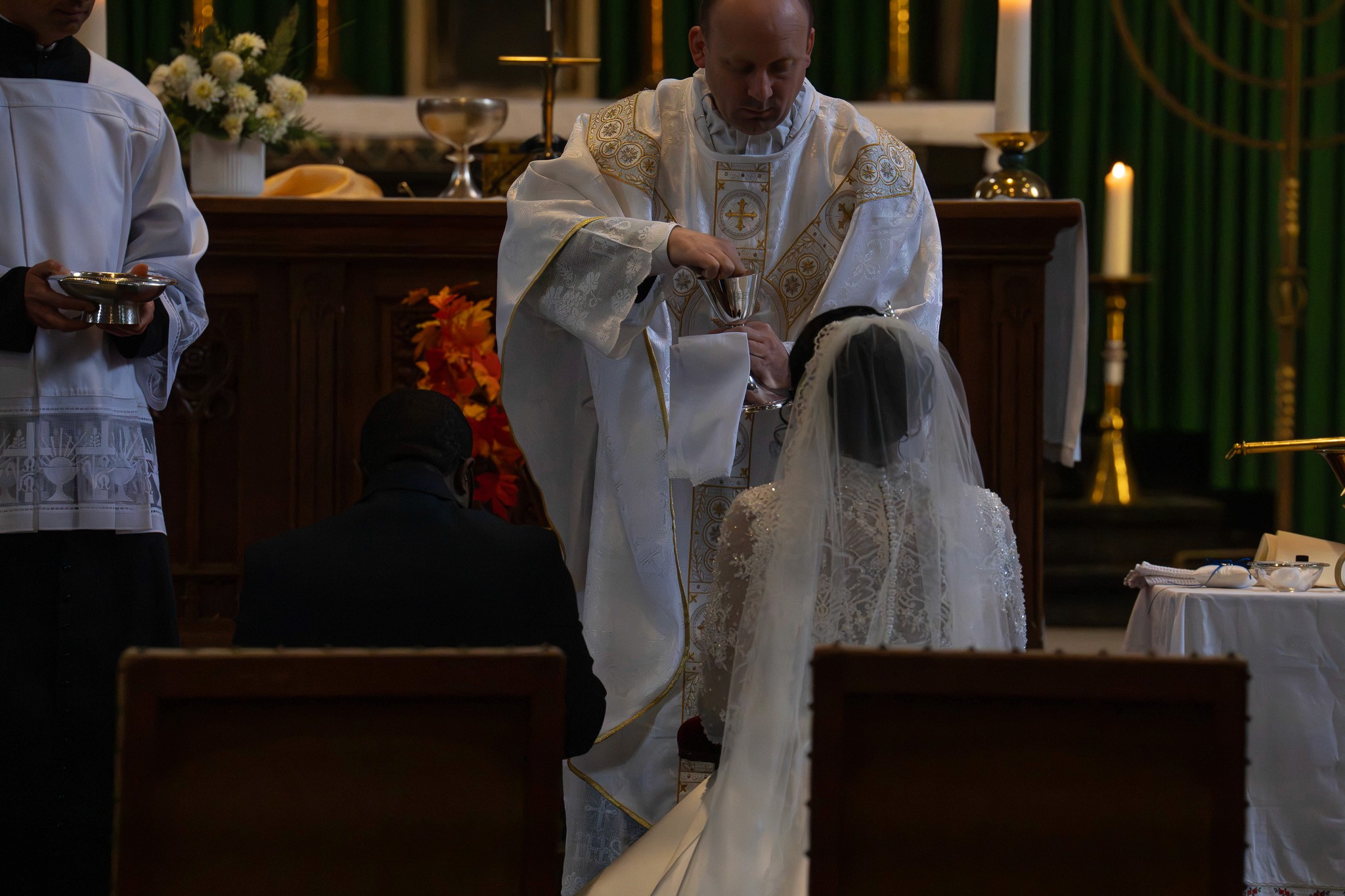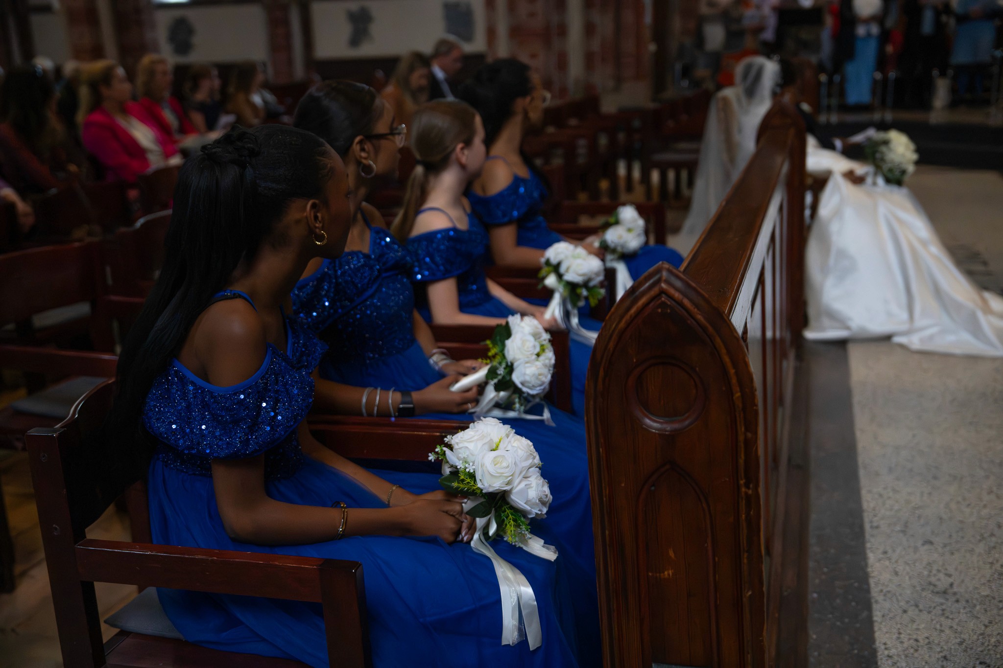 De ceremonie vond plaats in een prachtige Katholieke Kerk, waar het geloof een centrale rol speelde in hun liefde en toewijding.